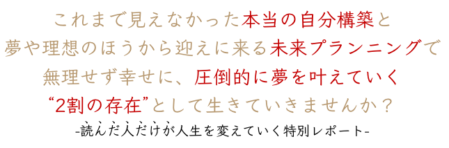 >>以上の全てを理解し、自分構築メソッドプログラムに参加する